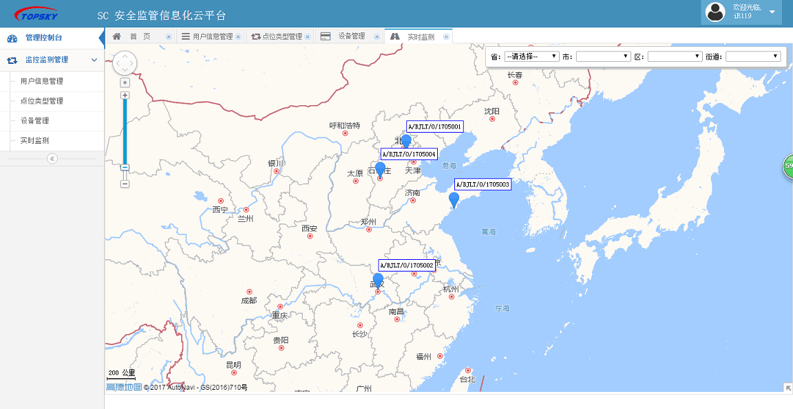 重大危險源在線監(jiān)控及事故預警系統(tǒng) PC端(省級) |