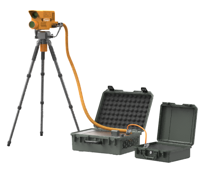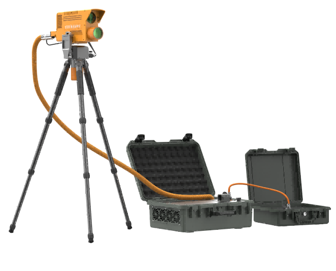 光學(xué)破拆裝置內(nèi)置高能光纖激光器,能夠從地面發(fā)射激光對(duì)鋼板、鋁板、鋼筋、彩鋼瓦、樹(shù)木、塑料、馬蜂窩等進(jìn)行遠(yuǎn)距離切割清除。