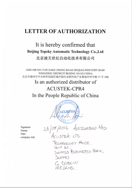 2014年7月28日,北京凌天成為 英國(guó)愛(ài)爾蘭ACUSTEK 公司 穿墻雷達(dá),門(mén)縫窺視儀 一級(jí)代理