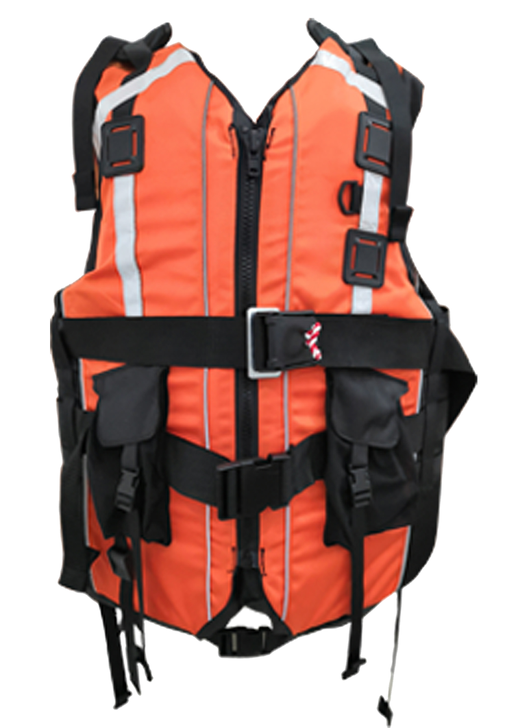 救生衣的面料采用方形針織壓力點和1680D材質(zhì)的Cordura?面料,使得救生衣足夠應(yīng)對復(fù)雜的水域活動。采用背心式設(shè)計,胸襟采用YKK塑鋼開口拉鏈,并使用塑料拉頭浮力片固定于布料夾層內(nèi),后領(lǐng)口增加手提式松緊提拉帶設(shè)計,方便于攜帶。