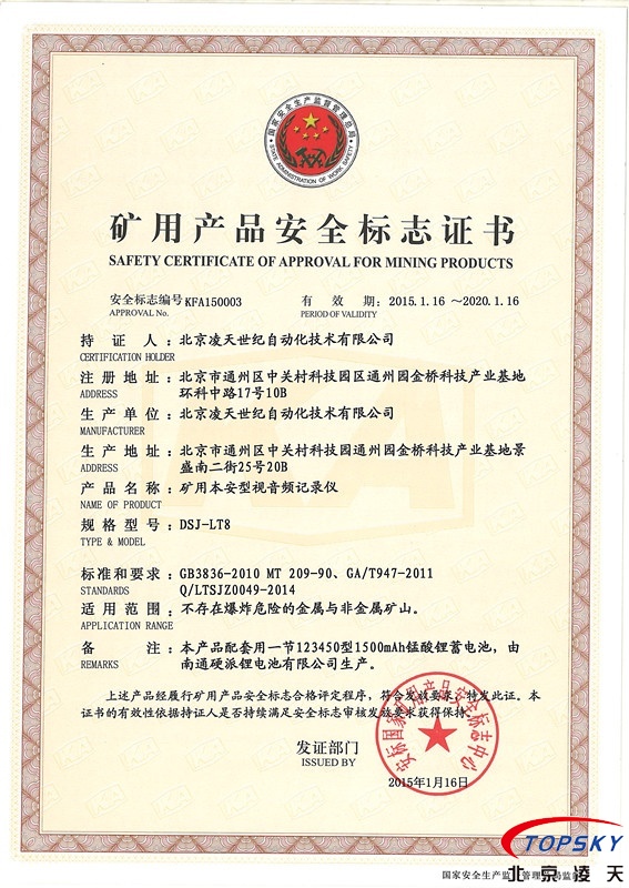 DSJ-LT8防爆執(zhí)法記錄儀取得煤安認(rèn)證