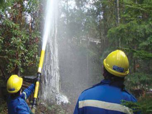 雙握把泡沫槍 可簡(jiǎn)單、快速噴射泡沫控制現(xiàn)場(chǎng)火勢(shì),打開混合腔的進(jìn)水,塞入泡 沫棒,擰緊密封蓋,連接進(jìn) 水管,就可以噴射泡沫,有 效的控制火勢(shì)。