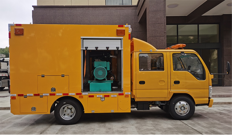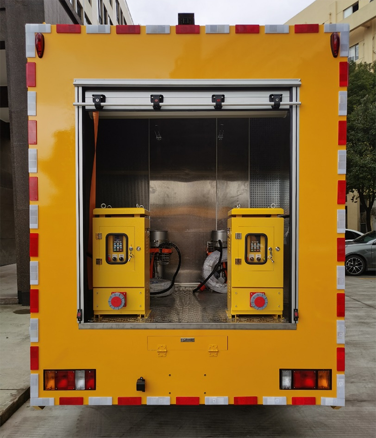 雙排座排澇車(1200m3),是在慶鈴二類汽車底盤的基礎(chǔ)上依據(jù)排水車的特點,配置柴油發(fā)電機組、兩臺大流量便攜式潛水泵并整合照明設(shè)備等功能設(shè)計改裝成型的專項作業(yè)車,整車尺寸較小,通過性較強,廣泛適用于各類搶險現(xiàn)場。