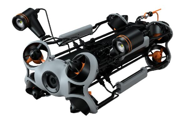 是一款工業(yè)級水下機器人。采用8推進器全矢量布局,360度全方位移動,最大航速3節(jié)、深度200米、最大水平半徑400米。