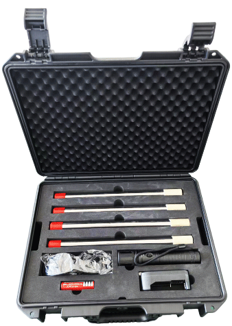 本款無電切割刀是一種利用高能藥劑產生的化學能完成破拆的便攜式破拆工具。無須任何外能源注入和任何輔助設備就可以輕松破拆鋼筋、鋼板、防盜門、防盜窗等金屬類障礙物,還可以破拆鋼化玻璃、中空鋼化玻璃等玻璃類障礙物。噴焰理論溫度超 2200℃,可熔化絕大多數(shù)常見金屬障礙物(如:鋼材、鋁材、鋁合金、銅材),破拆能力強。設備總重小于 700G,小巧輕便,可隨身攜帶,操作簡單,可以在無電、無氣、無水、高空、野外等大型設備無法抵達的復雜環(huán)境下正常工作。