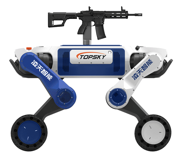武裝打擊輪足機(jī)器狗主要用于軍事和邊防領(lǐng)域,具備攻擊和防御能力,應(yīng)用場(chǎng)景廣泛。